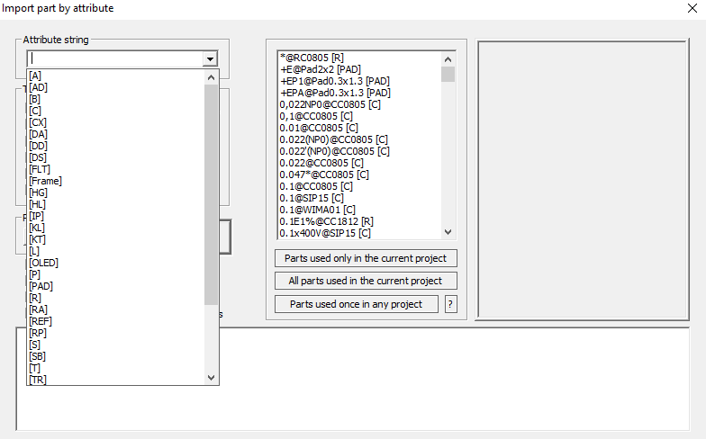 The dialog box for importing parts from other projects (F1 - Import Part) loads three attributes of the used parts - Value, Footprint and RefDes, so that you can find the part by prefix. For example, filter out in the list only capacitors (C) or resistors (R), etc. (before that there were only two attributes - Value and Footprint)